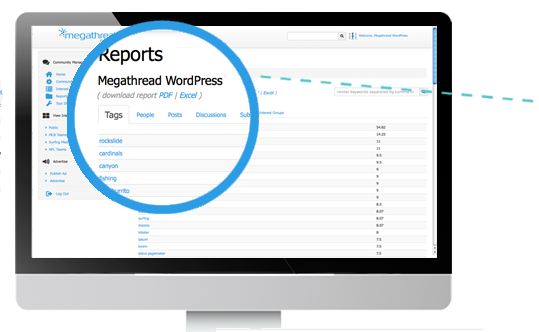 Through an intuitive dashboard, Megathread offers 100% control over community profiles that allow you to manage metrics, target varying segments, generate comprehensive reports, and much more.