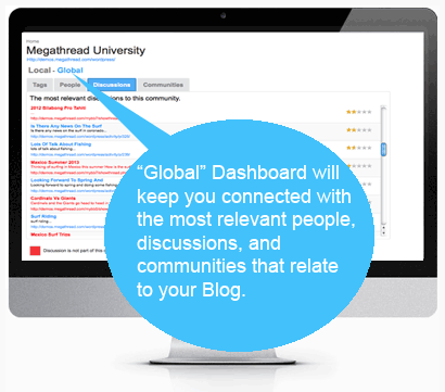 As more blogs, forums, and discussion platforms join Megathread, you’re blogging community will “see and be seen” by other people, discussions, and communities that are relevant to your blogging communities interests. It’s the easiest way for you, your blog and your members to be recognized over other platforms for the social influence you deserve.