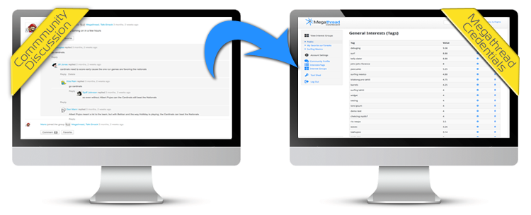 This patent-pending technology is based on a 3rd-person assessment of the discussion’s level of engagement and people’s influence within specific topics and areas of interest. As people continue to share and respond to comments and posts, Megathread™ recognizes and indexes significant factors that build more accurate credentials and a stronger social influence. The more relational the information and the higher the level of engagement, the more credible and accurate Megathread™’s social credentials become.
