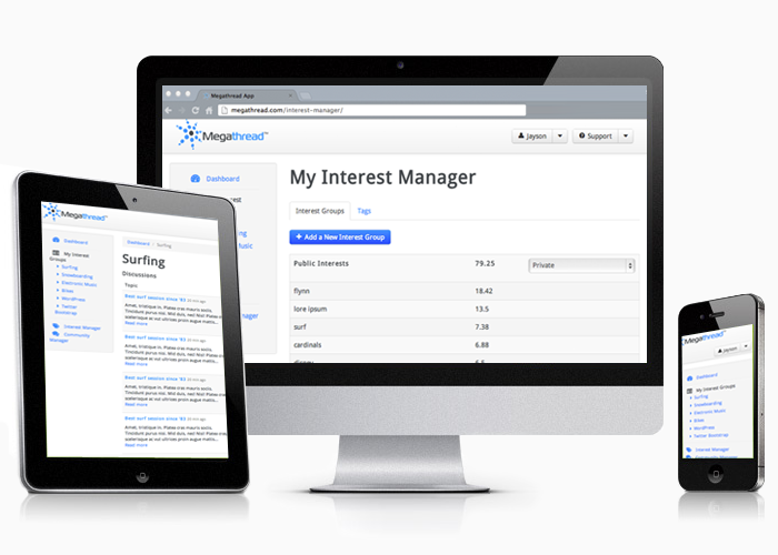Megathread‚Ñ¢‚Äôs Dashboard provides users & communities an environment for managing social presence and a comprehensive analysis of relevant connections. Megathread‚Ñ¢ Interest Groups provide users & communities the most accurate tool for optimizing peoples’ online community experience.